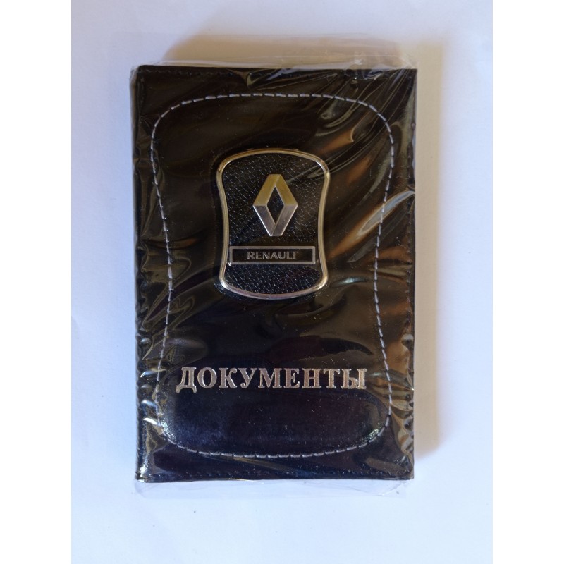 Автообложка ДОКУМЕНТЫ модельная со значком авто RENAULT (черная) кожа