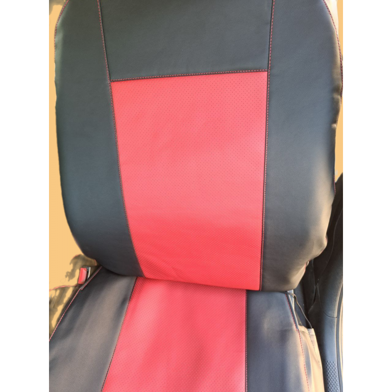 Чехлы универсальные ТУЛОН экокожа чёрный+красная перфорация (компл-перед+зад+5подгол). Отверстия под передние подголовники. Широкий задний карман на передних спинках. Вставка дополнительного клина на передней спинке для лучшего облегания. Лицевая часть триплированна 3мм паролоном. 3 молнии на задней спинке, 3 молнии на задней сидушке. 2 чехла для деления задней части.