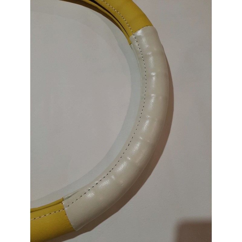 Оплетка кожзам под пальцы гладкая бело-жёлтая (М) Юран