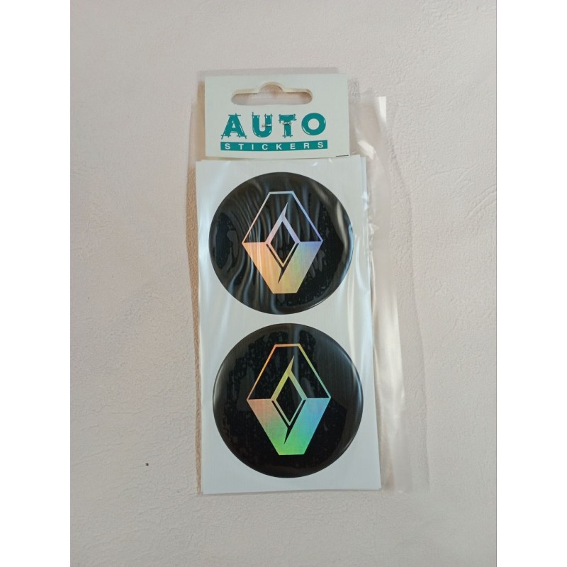 Наклейка (объемная) на колпаки "Renault" наружная голографическая,(комп.4шт)Ø6см, черный фон 02566