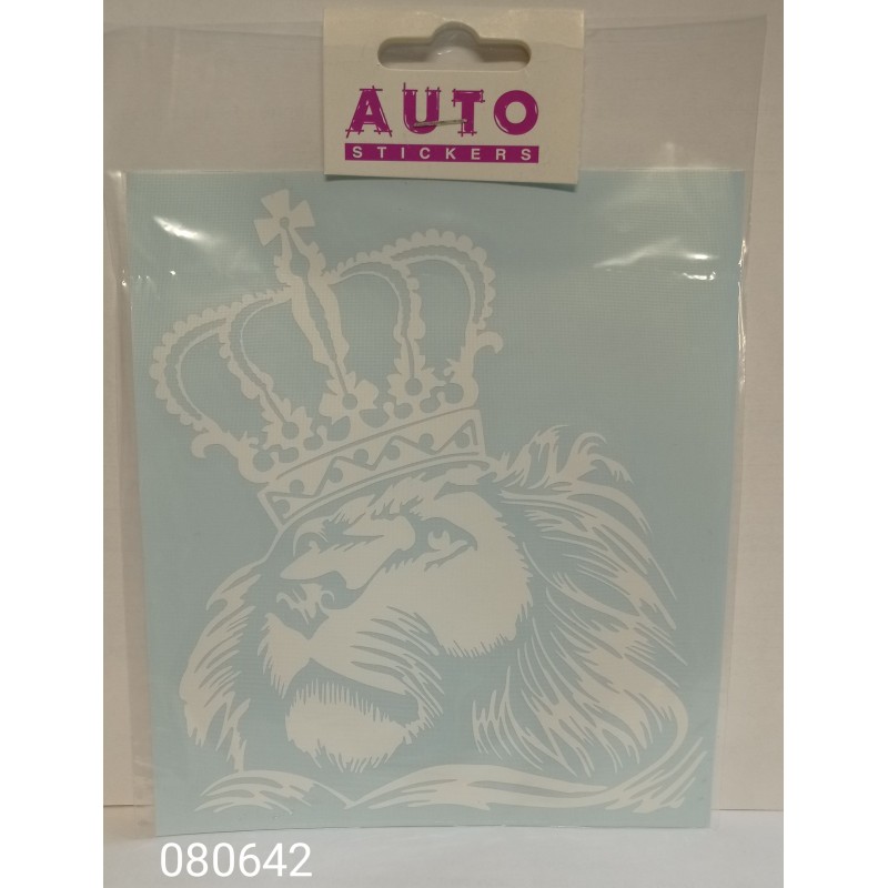 Наклейка (вырезанная) "Лев корона (царь)" наружная, (цвет белый), 13,5х15см 08669