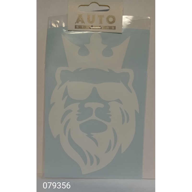 Наклейка (вырезанная) "Лев в очках (корона)" наружная, (цвет белый), 11х16см 08536