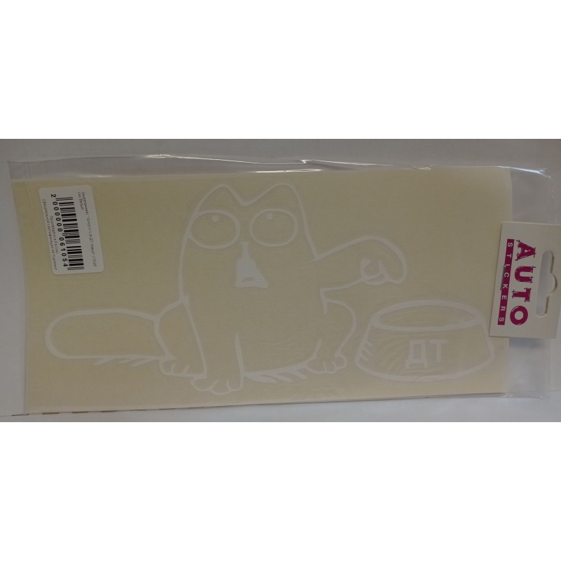 Наклейка (вырезанная) "Simon's Cat ДТ левый" наружная, (цвет белый), 12х25 см 06649
