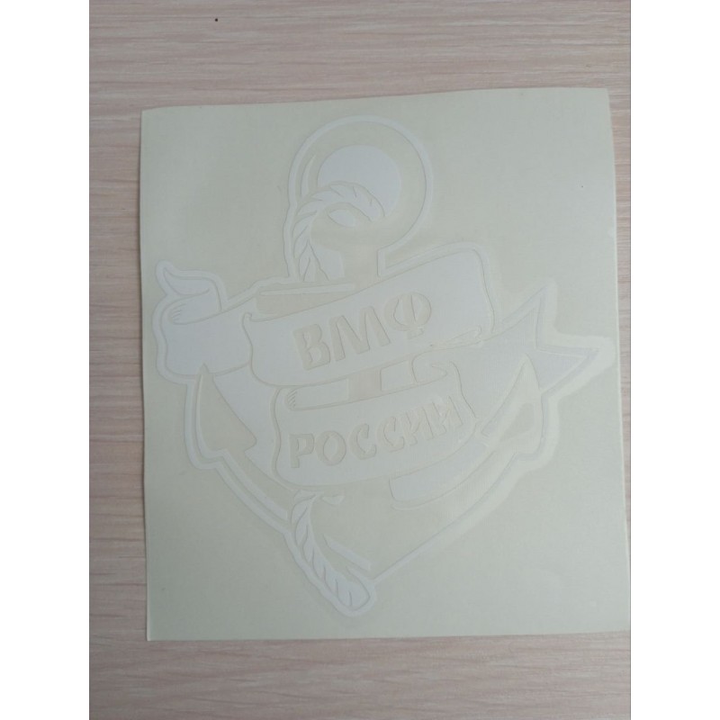 Наклейка (вырезанная) "ВМФ РОССИИ" наружная, (цвет белый), 12х13см 07562